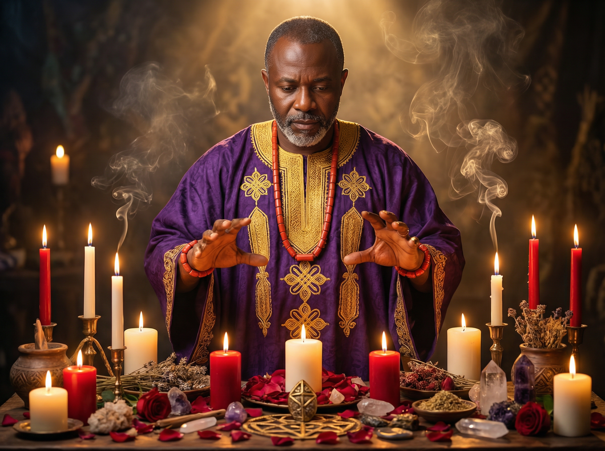 Born into a lineage of powerful Vodou priests in West Africa, Baba Ali has dedicated over 25 years to mastering the ancient arts of love magic and spiritual healing. His practices are rooted in authentic traditions passed down through generations, combining sacred rituals with deep spiritual wisdom.